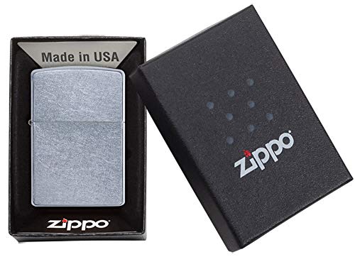 Genuine Zippo windproof lighter with rugged street chrome finish resists scratching and fingerprints. Refill with Zippo premium lighter fluid for dependable, long-lasting service. Distinctive bottom stamp identifies this lighter as genuine Zippo.
