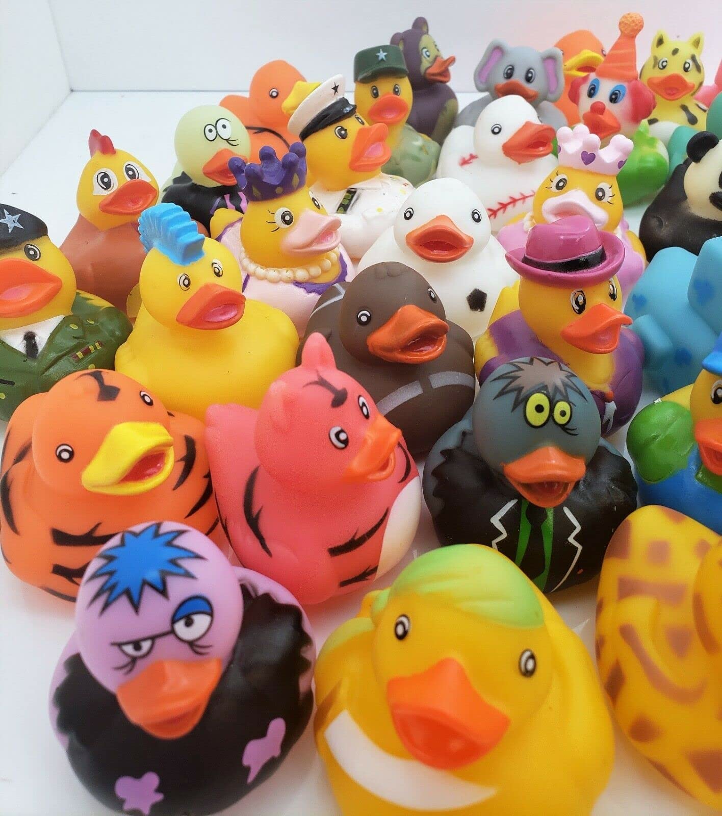 - Assorted Duckies. 2″. Please note: there will be duplicates and not pictured designs in larges quantities ordered. Ducks do not float.