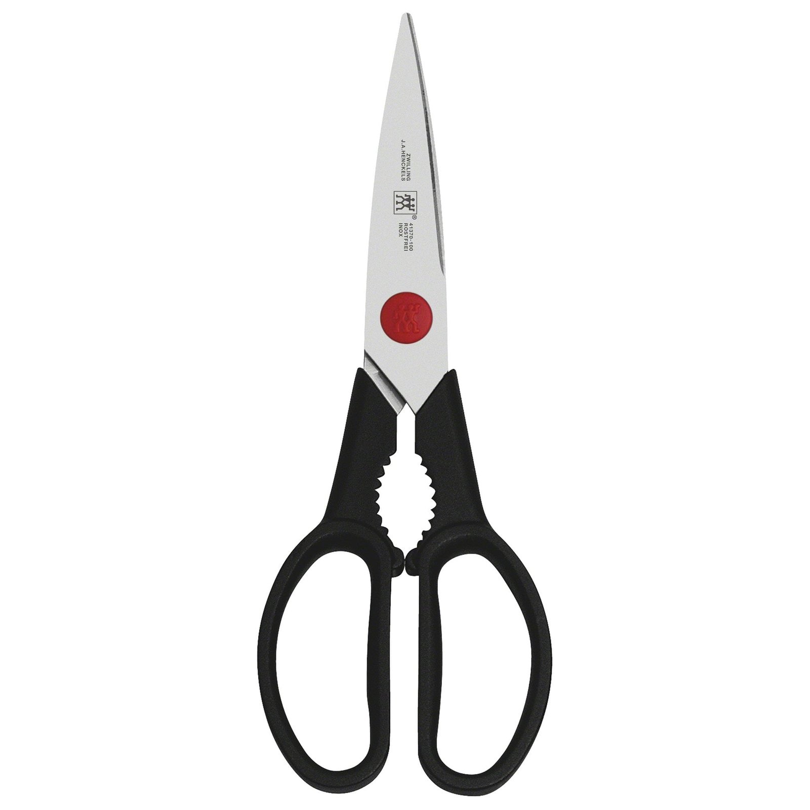 ZWILLING J.A. Henckels TWIN L Kitchen Shears handle every kitchen cutting task with ease. Whether snipping herbs, cutting foods or safely opening packages, these shears are up to the task. The stainless steel blade can be sharpened and the shears are dishwasher safe (hand wash recommended).